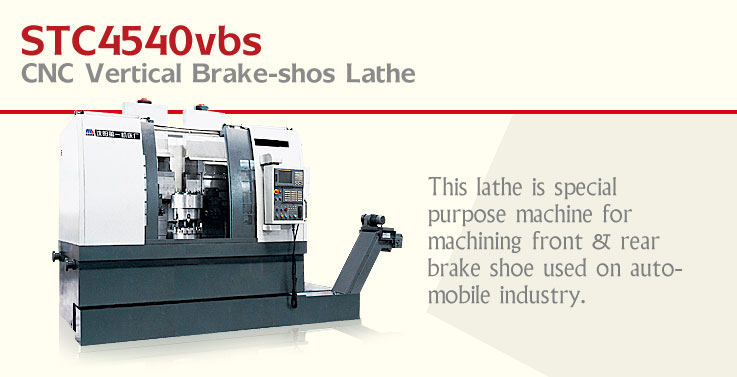This lathe is special purpose machine for machining front & rear brake shoe used on automobile industry. Features. Single spindle, symmetrical-double-turrets and line-up tooling are available. Tool bolders with high rigidity are made by ourselves according to actual situation of workpiece. All key compinents are imported form foreign well-known builders so that high reliability, big torque and high rigidity can be achieved. Fanuc 0i-Mate, AC main drive and AC feed servo motor are adopted. Special purpose clampers are available for clamping two workpieces simultaneously. With aid of double-turret structure, end surface and circular surface of workpiece can be machined at one time.