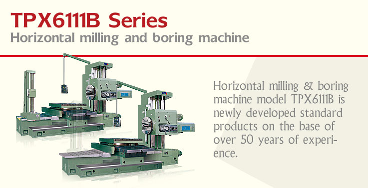Horizontal milling & boring machine model TPX6111B is newly developed standard products on the base of over 50 years of experience, with the absorption of cream technology from home and abroad products, and with perfect properties.