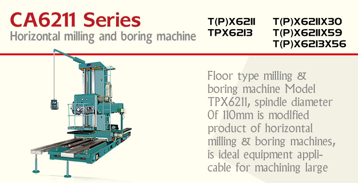 Floor type milling & boring machine Model TPX6211, spindle diameter 0f 110mm is modlfied product of horizontal milling & boring machines, is ideal equipment applicable for machining large size parts. It is used for drilling, counterboring, boring, reaming, spot facing. Threading and milling large flat surface, etc.