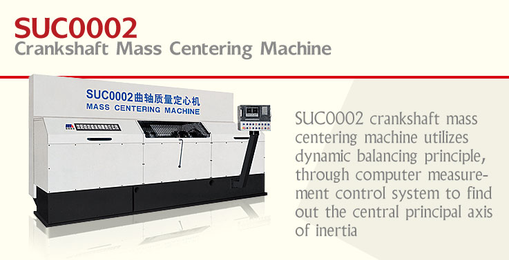 SUC0002 crankshaft mass centering machine utilizes dynamic balancing principle, through computer measurement control system to find out the central principal axis of inertia (normally called mass central axis) of the crankshaft roughcast and machine center holes on this axis. Mass centering machine can effectively reduce the initial imbalance of the crankshaft machined, thus improve the final balancing accuracy and efficiency of the crankshaft. Reducing initial imbalance is very important to crankshafts with balancing clump weight. Less imbalance means less mass reduced from the balancing clump weight during balancing and alignment, so as to guarantee the internal mass compensation in regard to structure design of the crankshaft.